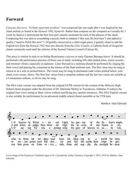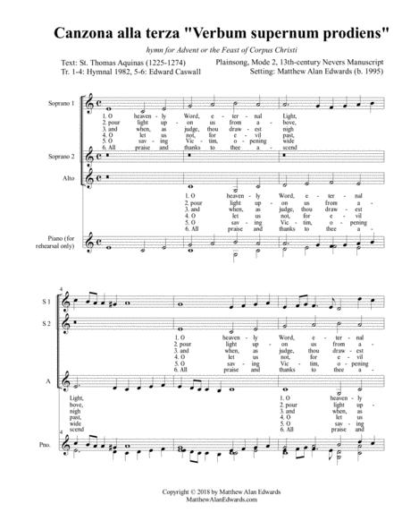 Op. 7 Canzona alla terza “Verbum supernum prodiens” (SSA/TTB, English)
